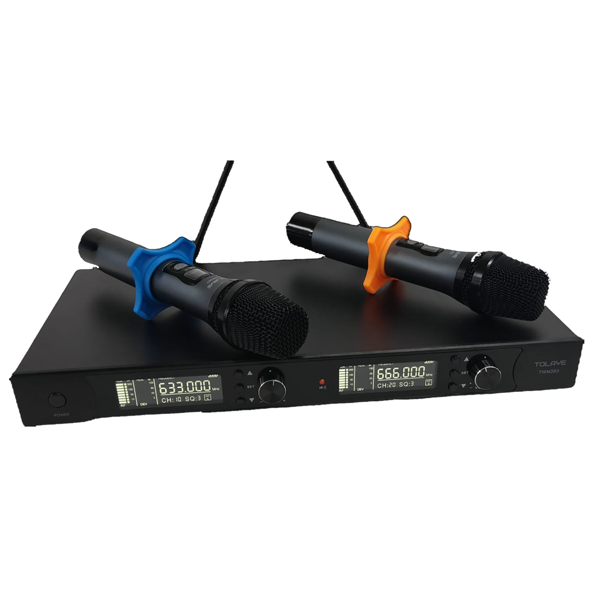 TOLAYE TWM-383HH WIRELESS MICROPHONE Dual Channel UHF, 2 x Handheld with Rack Mount Receiver and Changeable Frequency
